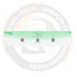 Adesivo/painel decorativo compatível na cor verde e branco, desenvolvido para reposição estética do painel frontal da lavadora Brastemp, restaurando o visual original do equipamento com acabamento de qualidade.