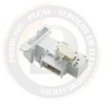 Bloco de trava de tampa utilizado em lavadoras Electrolux, Colormaq e Mueller, responsável pelo travamento de segurança durante o funcionamento do equipamento. Produto similar de alta qualidade, garantindo encaixe eficiente e funcionamento seguro.