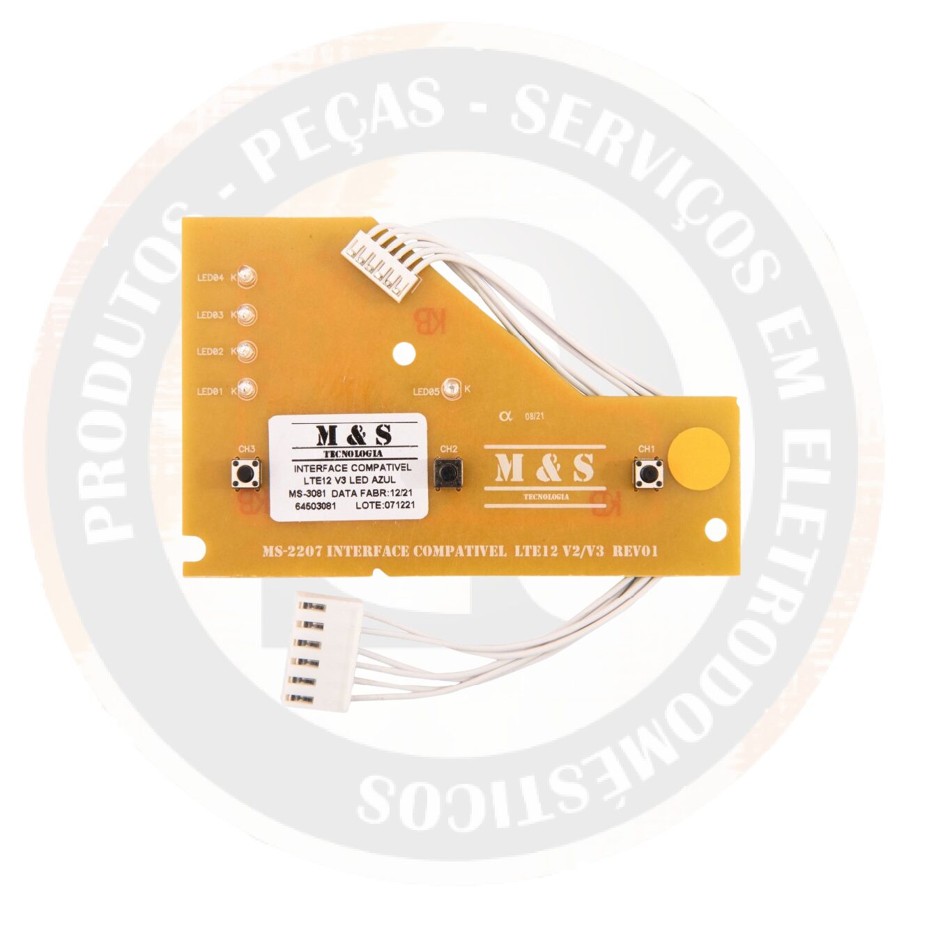 Placa interface de liga/desliga versão 3 para lavadora Electrolux LTE12, responsável pelo comando das funções do painel e acionamento do equipamento. Produto similar da marca M&S, fornecido com… -