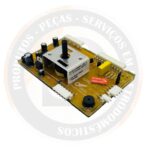 Placa de potência com seletora bivolt utilizada em lavadoras Electrolux LBU16, responsável pelo controle das funções elétricas do equipamento, garantindo funcionamento seguro e eficiente.